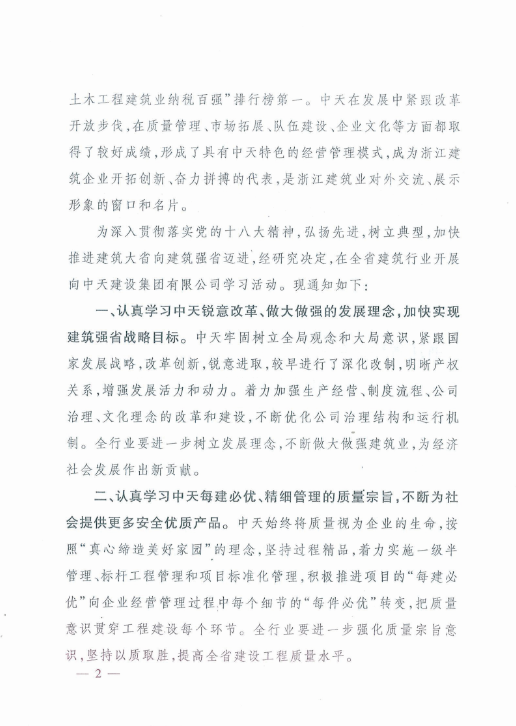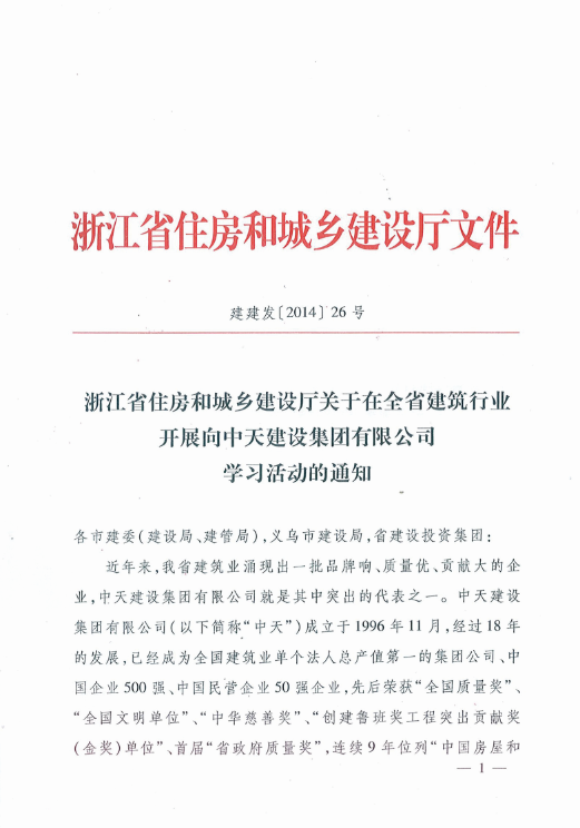 《浙江省住房和城乡建设厅关于在全省建筑行业开展向d88尊龙z6建设集团有限公司学习活动的通知》